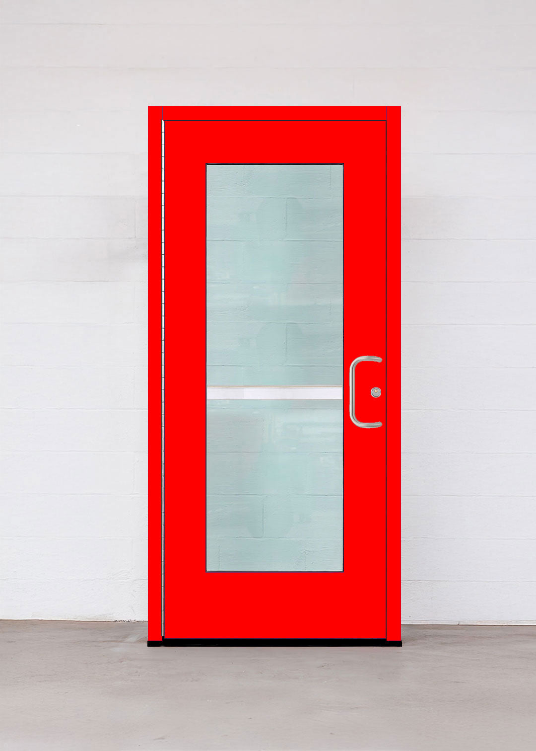 Main Door Image shown with optional internal panic hardware. Custom hardware choices available. Please contact us.