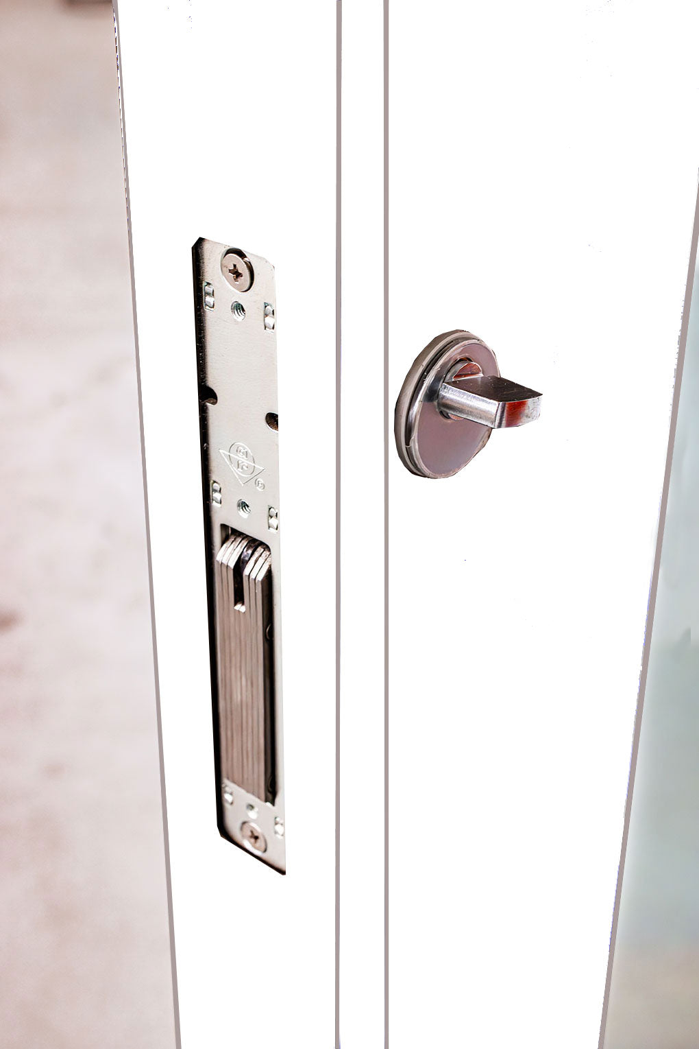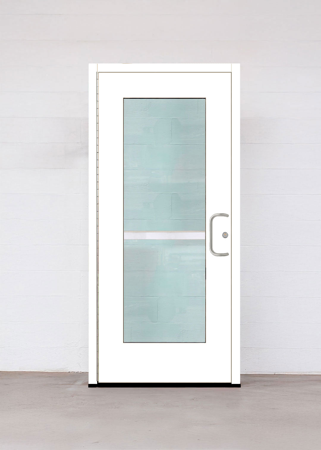 Main Door Image shown with optional internal panic hardware. Custom hardware choices available. Please contact us.